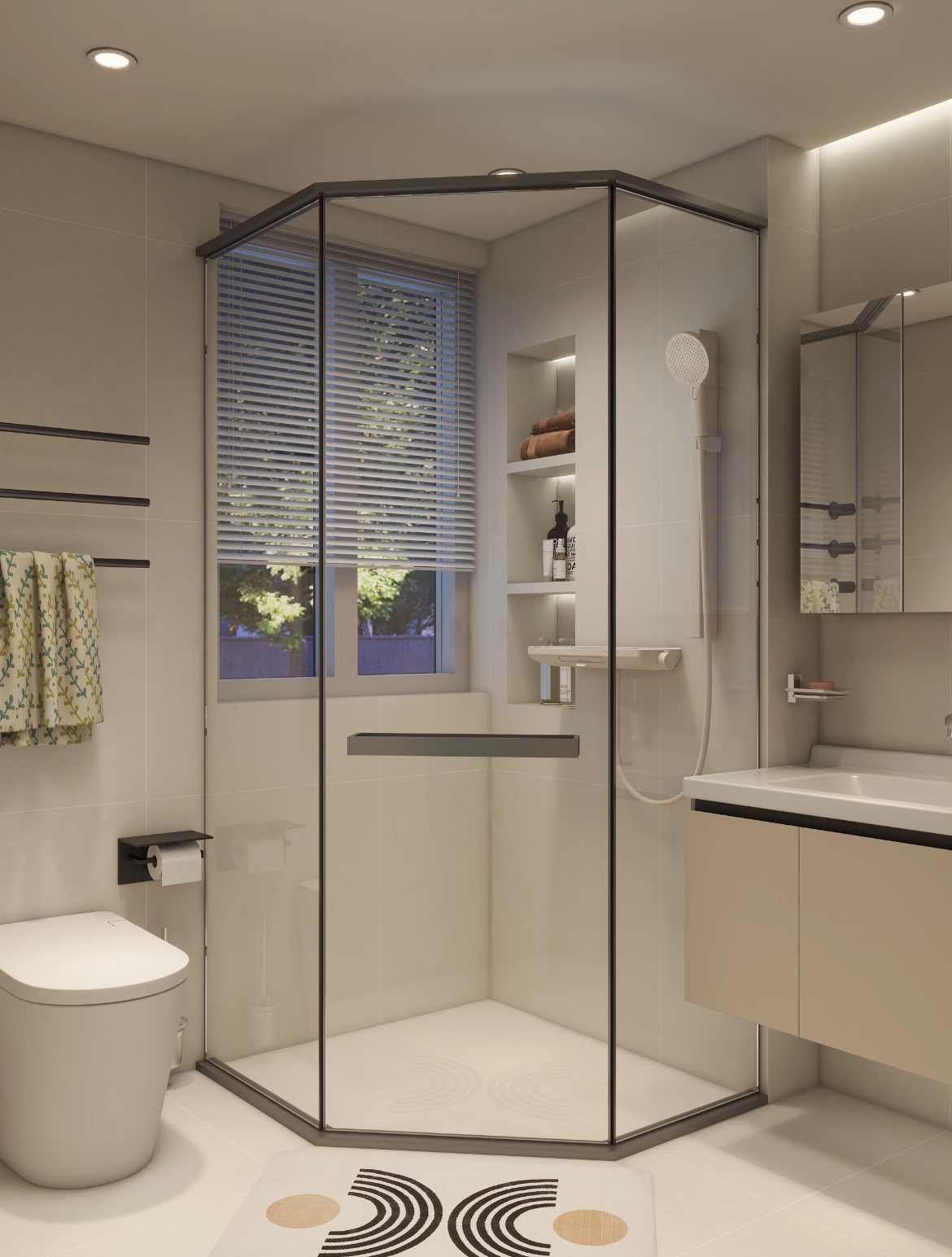 Artfully utilizes corner space for efficient area-saving and effective wet-dry separation. Features a stable structure—a classic, practical solution for compact bathrooms.