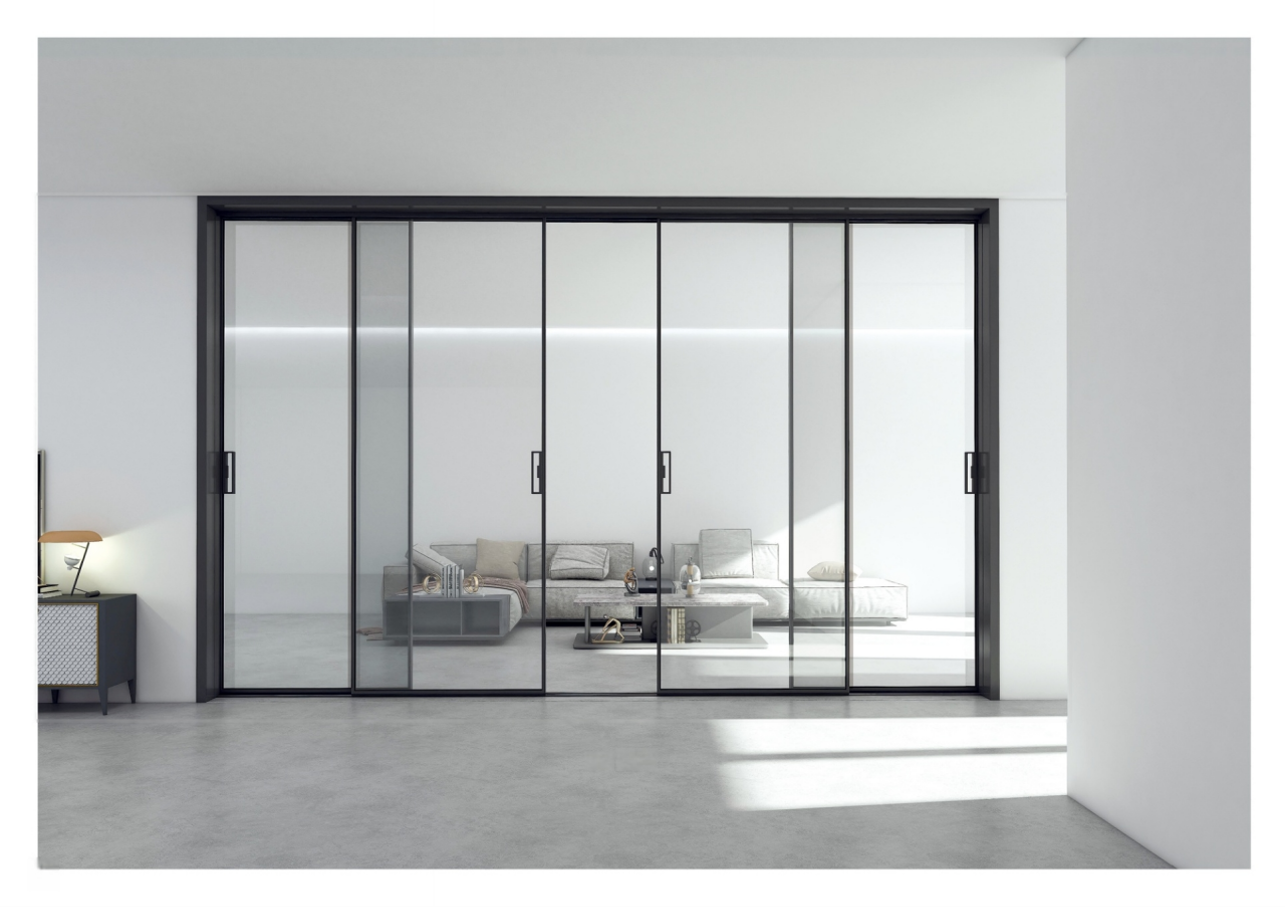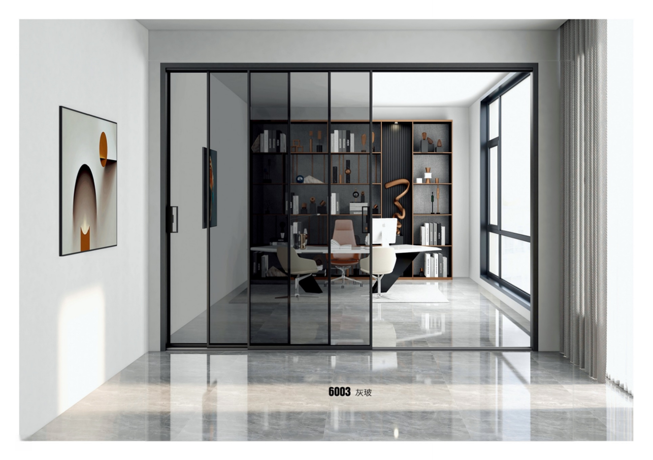 Opens and closes by sliding horizontally, saving indoor space. Available in top-hung and floor-track versions, with a simple and modern appearance. A popular choice for living room partitions, kitchen doors, and wardrobe doors.
