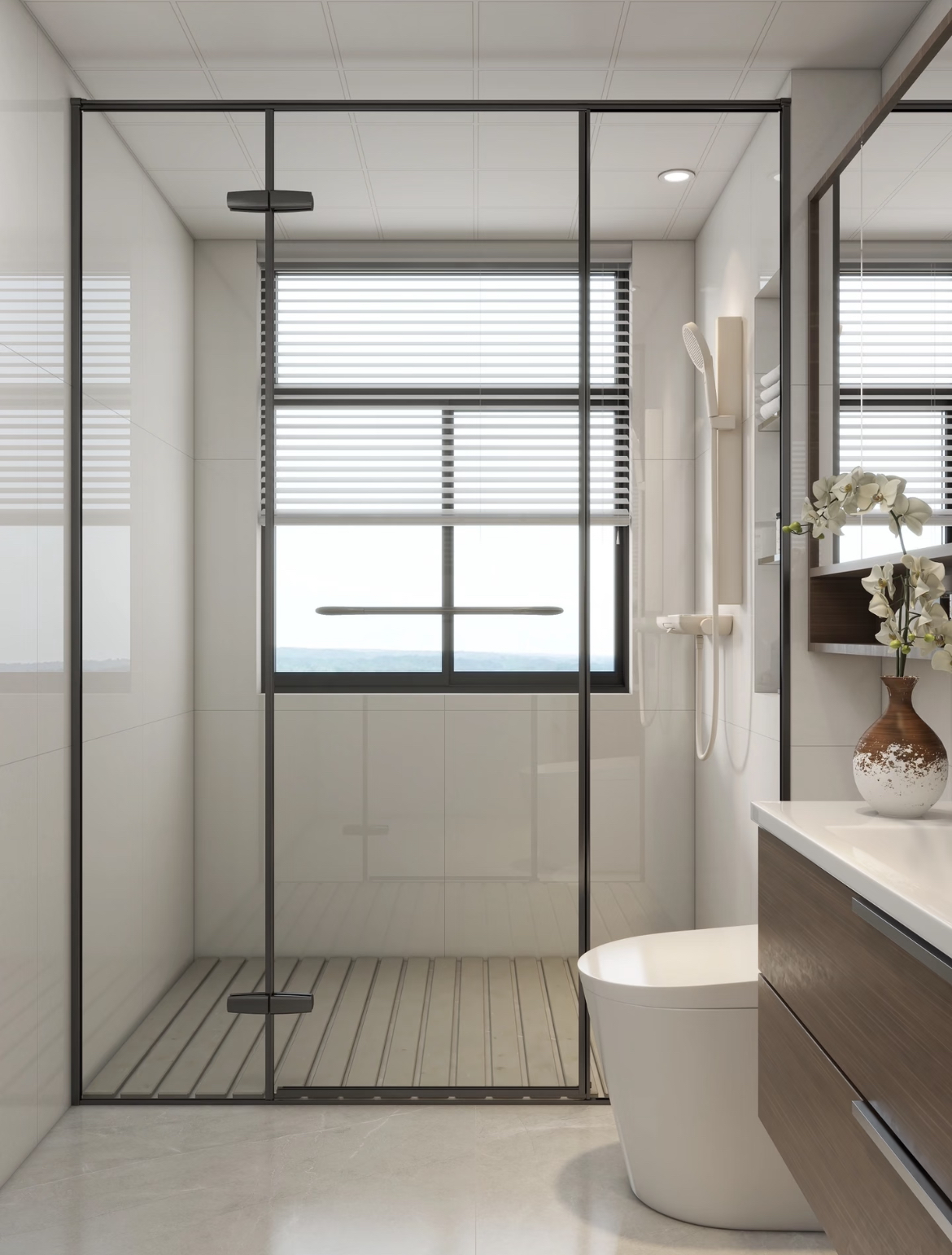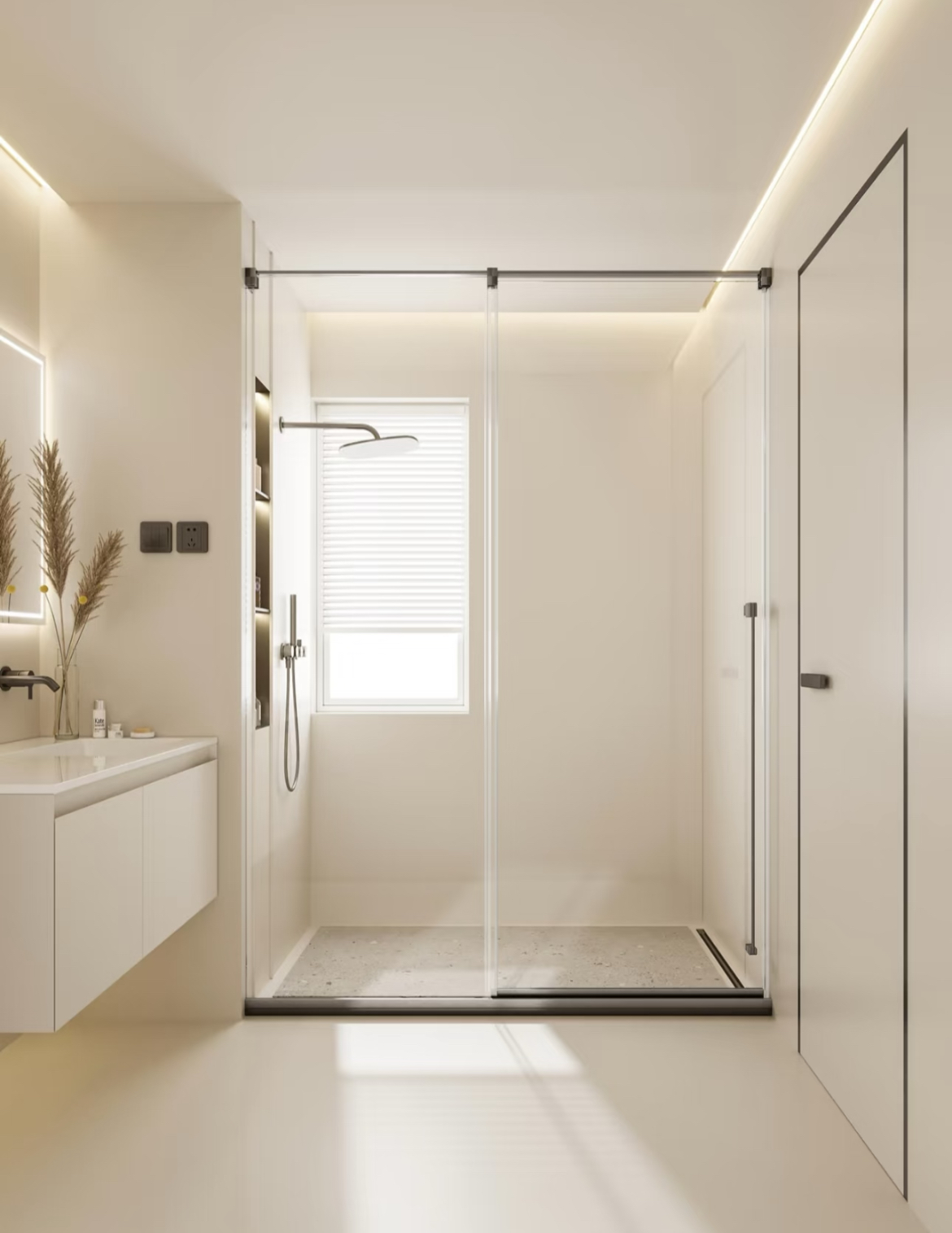 Simple and elegant linear design that creates a clear dry-wet zone. Offers flexible installation, smooth operation, and easy cleaning, suitable for most rectangular bathroom layouts.